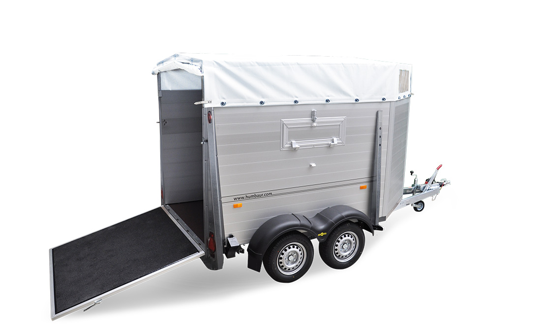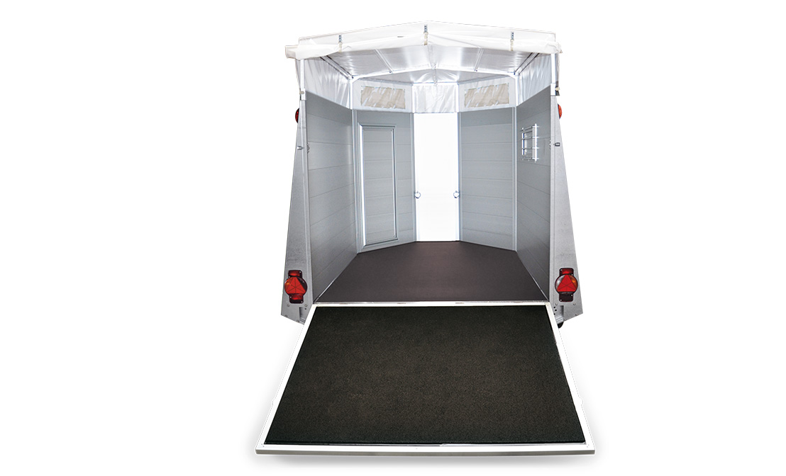 Mit ihm transportieren Sie Ihre Tiere sicher und für viele Jahre. Der Viehanhänger mit vorne schrägem Aluminiumaufbau ist robust konstruiert. Sein Aufbau besteht aus doppelwandigen Aluminiumprofilen, die an einem massiven Außenrahmen aus feuerverzinktem Stahlblech befestigt sind. Alle Einfassungen sind ebenfalls aus korrosionsbeständigem Aluminium gefertigt. Ein haltbares Planendach schützt Ihr Vieh vor der Witterung. Sein Fahrwerk mit Einzelradaufhängung überzeugt mit wartungsfreien Federachsen.
