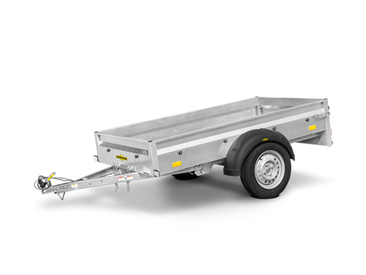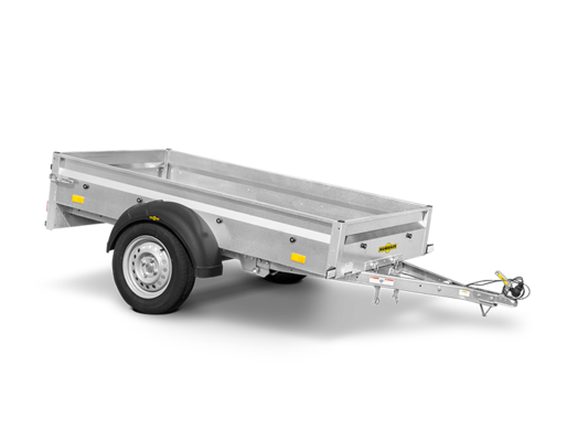 Small, nimble, versatile: The Steely DK is more than just an introduction to the world of Humbaur transportation solutions - the car trailer is also a real space-saver thanks to its folding drawbar. As it can be positioned vertically with the drawbar folded down, the trailer can be stored against the garage wall, for example, and easily accessed at any time. The Steely DK is a practical transportation companion for personal use that will help you move almost anything - from tools and building materials to garden waste, crates and boxes. The trailer can also be fitted with a side plate extension, H-frame, flat cover or tarpaulin and frame, making light work of the most challenging transportation scenarios. Inside the trailer, four tie rings on the side walls can be used to secure cargo. The side walls are also equipped with pre-assembled fastening buttons for attaching tarpaulins.