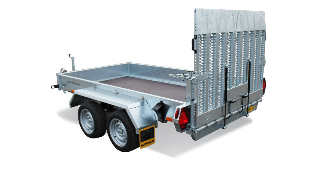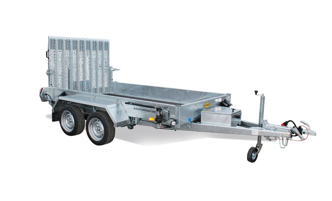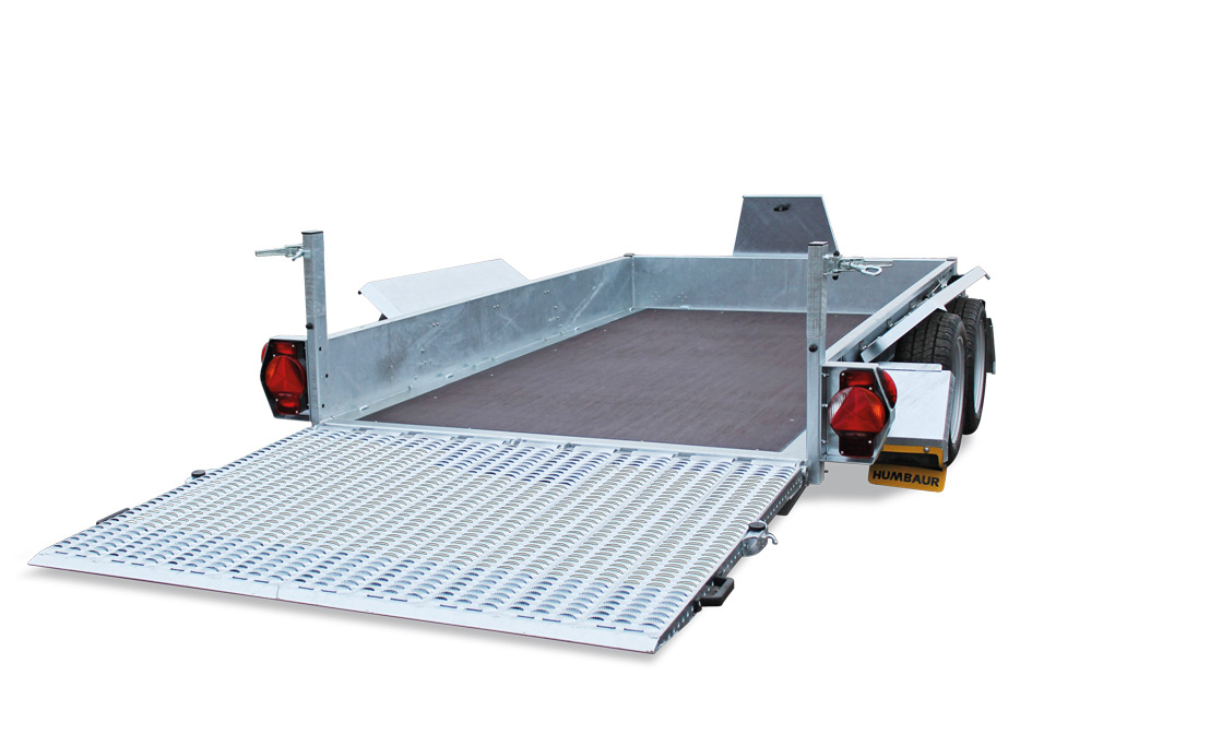Pont arrière galvanisé à chaud par immersion avec garniture grillé antidérapante et avec support vérin à gaz (Hauteur env. 1240 mm, 2500 kg charge par essieu).