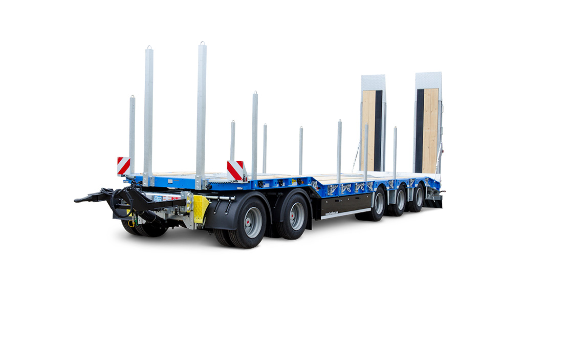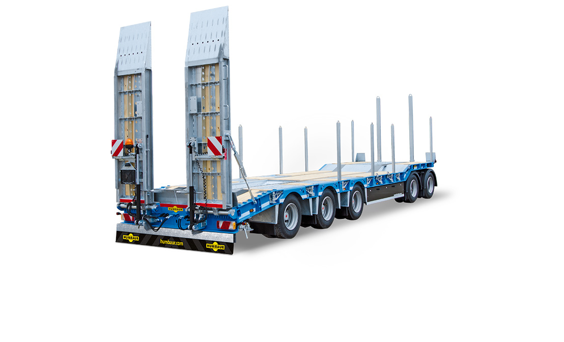 Notre modèle phare pour les tâches très exigeantes, dont le PTAC peut aller jusqu'à 50 t ! Sa construction massive soudée en acier à grain fin hautes performances et sa surface de chargement abaissable à suspension pneumatique font de la remorque HTD 5 essieux un partenaire très fiable. La surface de chargement coudée sert de butée pour les véhicules à roues ou à chenilles. Le chargement reste en appui et est plus facile à sécuriser. Ce modèle est équipé de rampes de chargement coulissantes galvanisées à chaud d'un seul tenant.